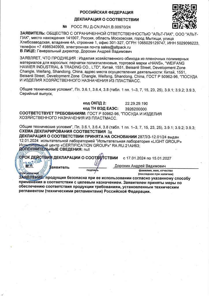 Одноразовые перчатки изготовлены из прочного полиэтилена низкого давления. Идеально обеспечивают защиту рук от влаги, масла, жира, грязи и бытовой химии, красящих веществ, эффективны при защите от микроорганизмов. Вес перчатки: 0,6 г. Толщина: 7,8 мкм