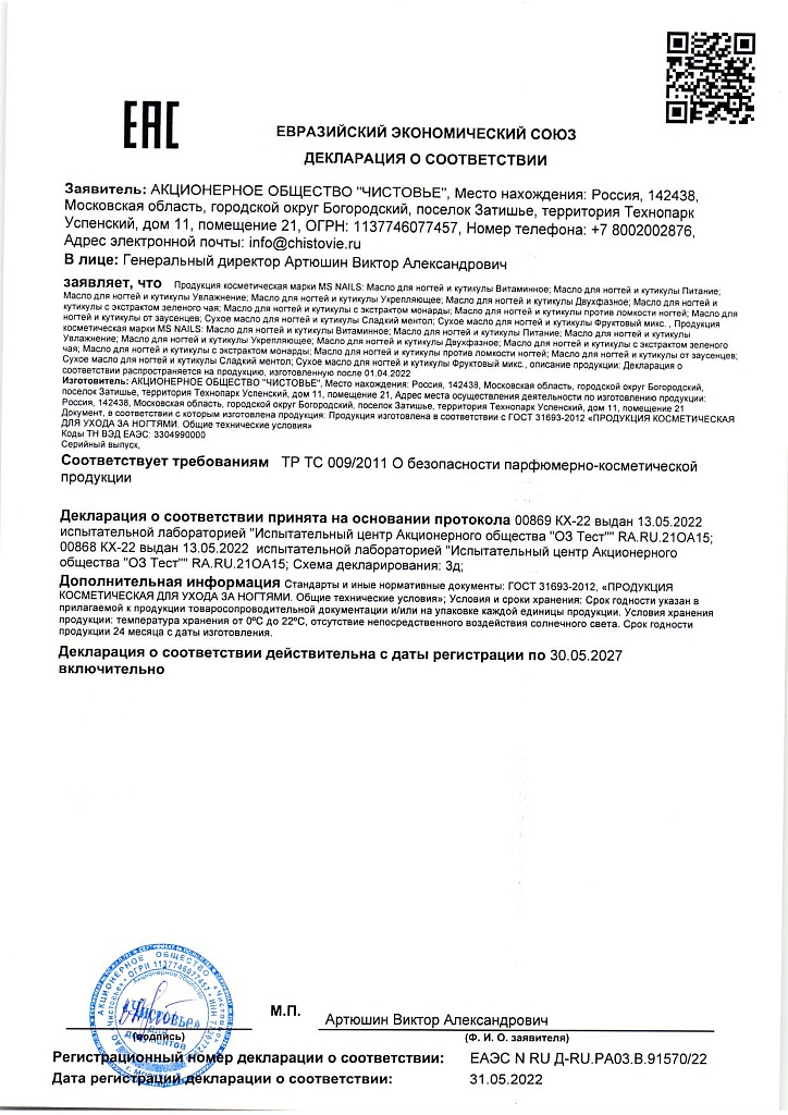 Масло с экстрактом монарды MS NAILS, 15 мл, Бесцветный, 1 шт/упк