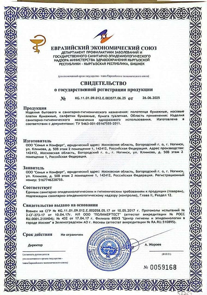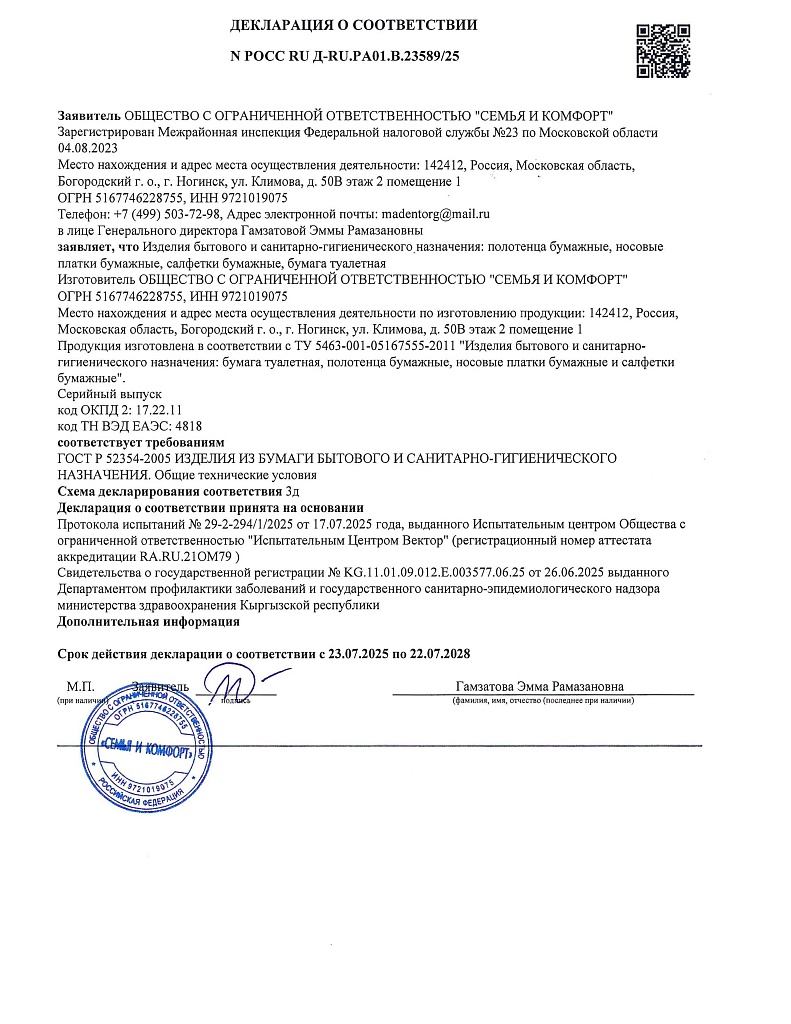 Бумага двухслойная туалетная белого цвета. С декоративным тиснением, перфорированная. Длина одного рулона - 19,5 м, количество листов в рулоне -170, размер листа - 115х95 мм.